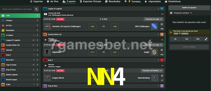 A aposta NN4 oferece aos jogadores a experiência mais conveniente de apostas em eSports!
